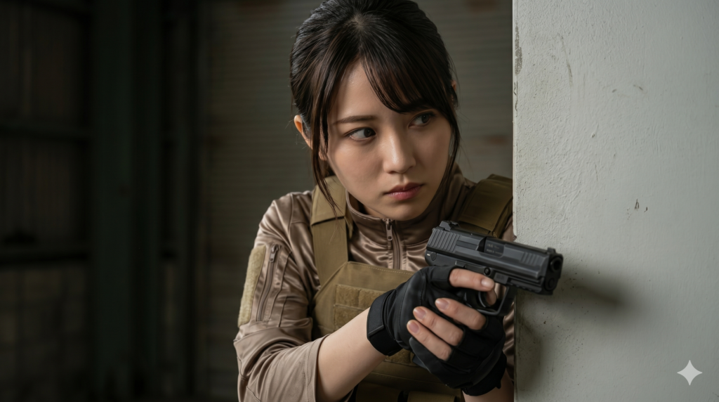 インドアでは取り回しのよいハンドガンが非常に有効です。